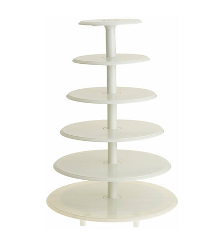 This cake tower can be assembled in many different ways. Holds cake tiers, multi height spread, cupcakes or mini desserts. Price reflects rental rate per event.