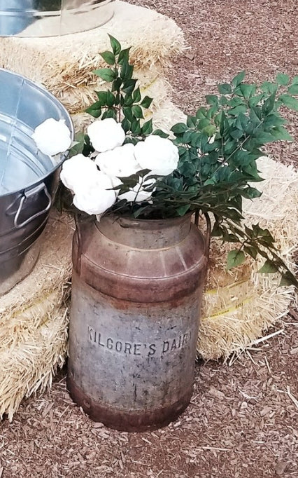 Create a great rustic display with our milk can. Floral not included. Price reflects rental rate per day.