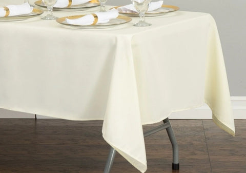 52x114 ivory linen provides mid drop on 6 or 8 ft rectangle tables. Event ready. Price reflects rental rate per event.