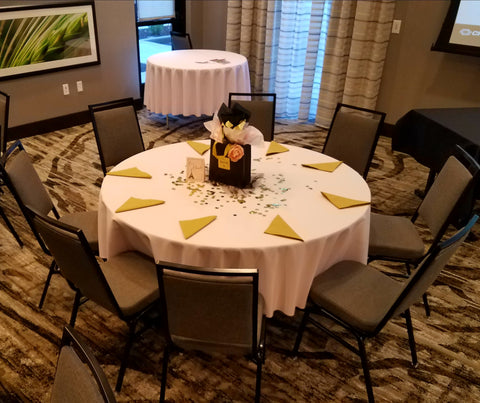 Choose light pink for a perfect soft touch. 90" round. Price reflects rental rate per event.