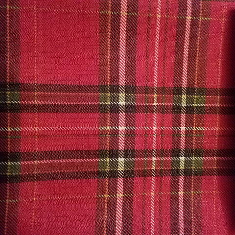 Red tartan banquet table linen. 60"x84" rectangle Price reflects rental rate per event.
