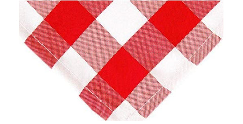 Linen, red and white checked 60"x120", perfect for your 6 ft or 8 ft rectangle table. Pressed, event ready. Price reflects rental rate per event.