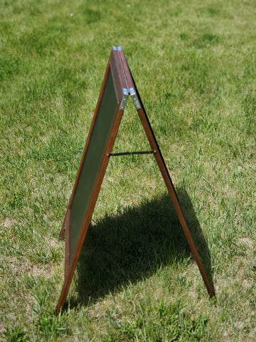 Express your message, menu or directions to guests with ease and style using our sandwich double-sided chalkboard sign.  See photos for measurements. Price reflects rental rate per event.