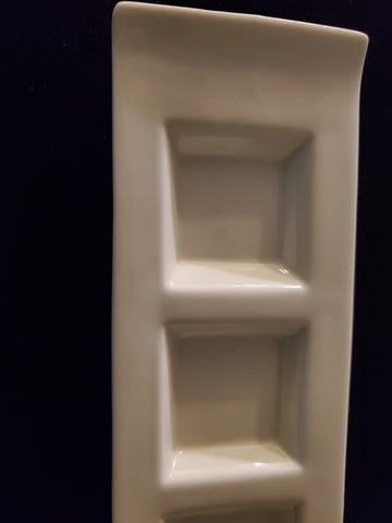 White Porcelain Compart Tray, multiple serving uses. Price reflects rental rate per event